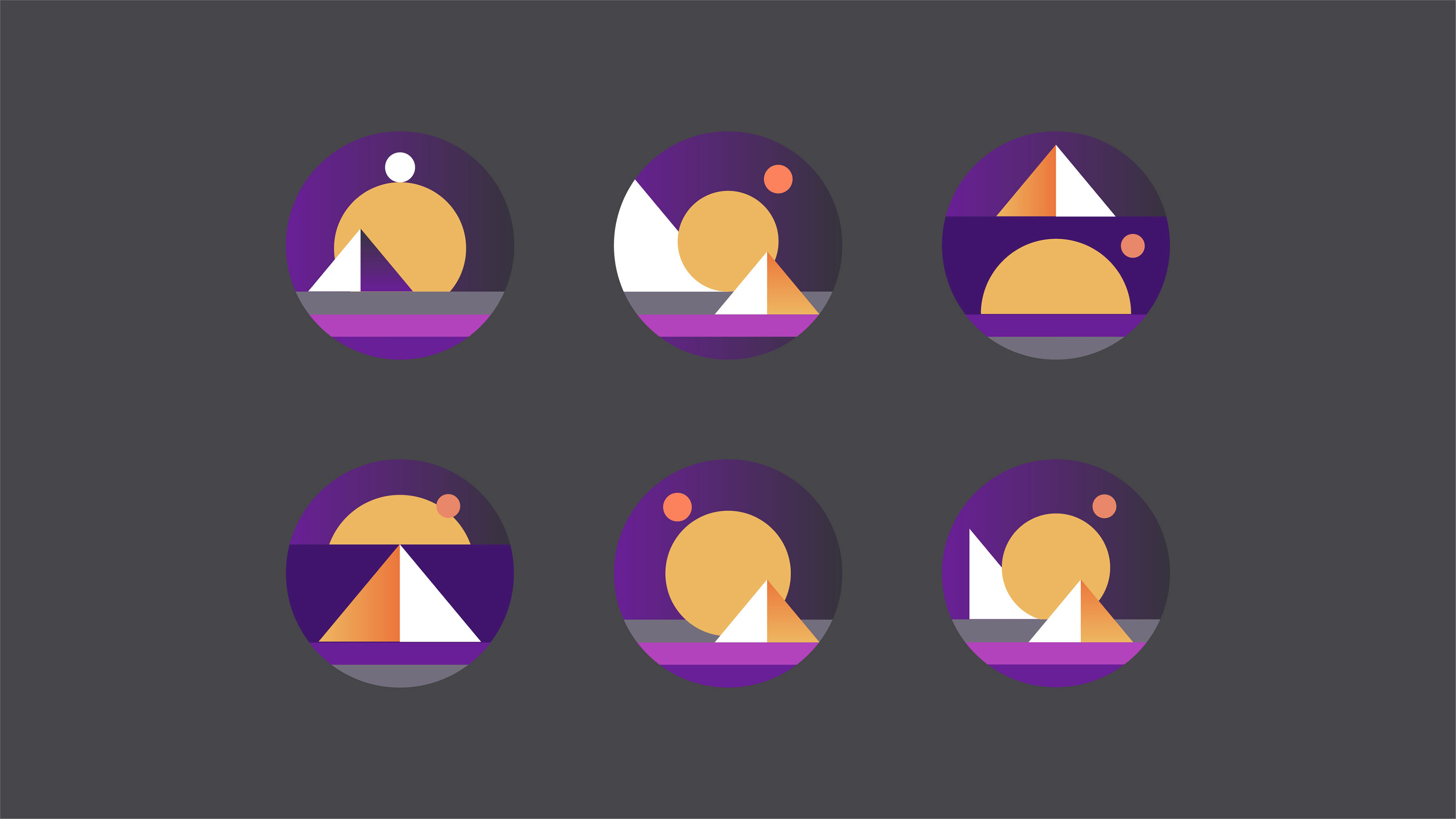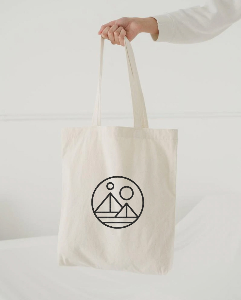 The logo consists of a font that can have a long mode and a short mode. The icon has a fluid aspect, its elements move and scale to show you other points of view of the same pictorial scene. This world that we tell of has two moons and two pyramids resting on a soil made of several layers. It can be used in color and in black and white lines.
