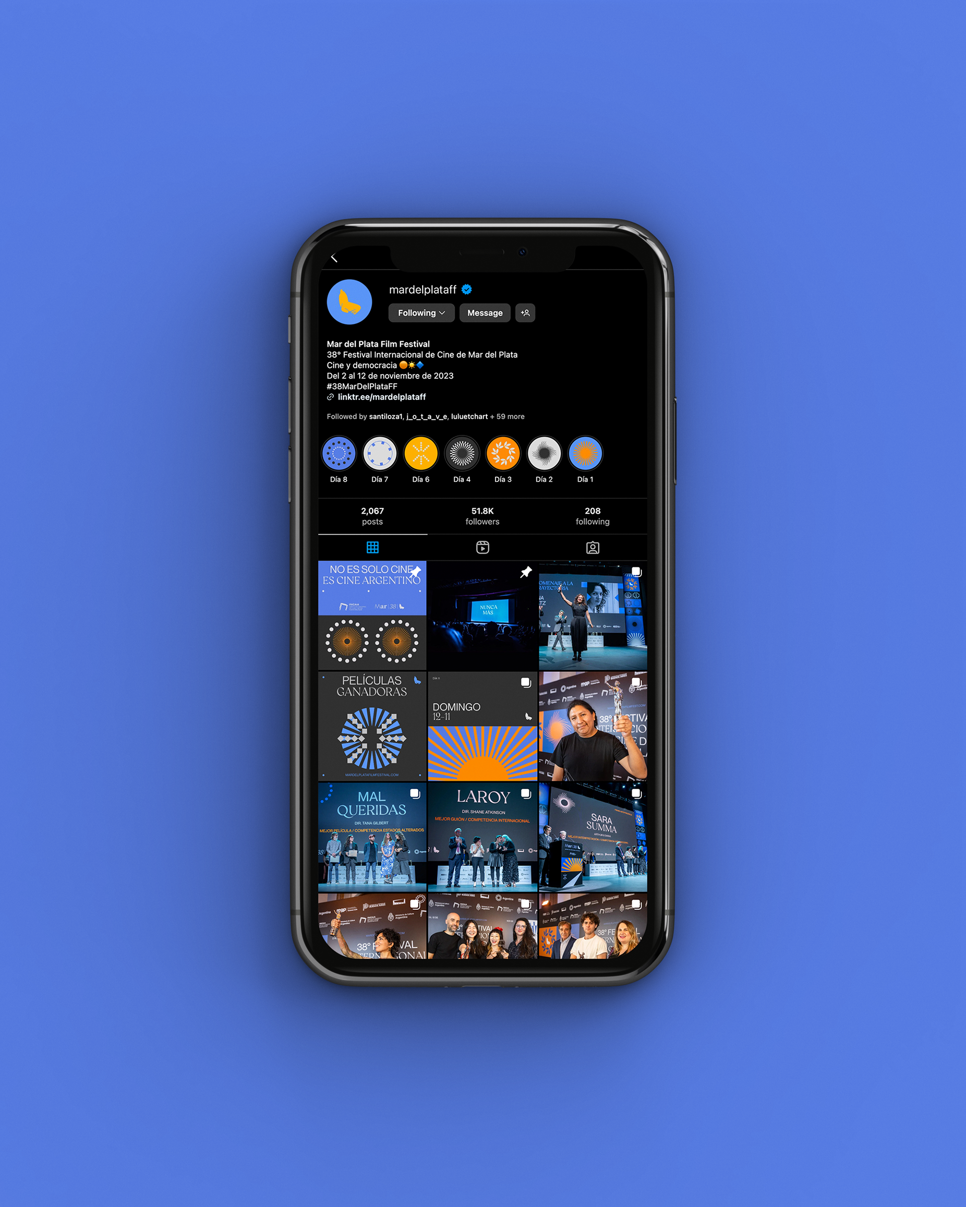 The festival's graphic universe is based on national symbols such as shields, coins, and the synthesis of cameras in motion. These elements evoke Argentina's cultural identity and the vitality of Argentine cinema in Mar del Plata, while the color palette reflects the hues of the sky and the sea, creating a warm and inviting atmosphere.